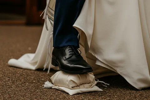 The modern spin: Why should only one person have the fun? I love it when both partners break a glass. It’s a double "Mazel Tov!" that tells your guests the party has officially begun.